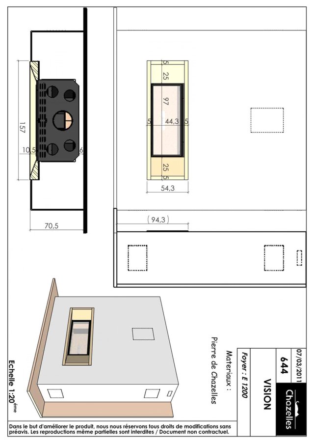 Kaasaegse välimusega kamin sirgele seinale. Kamina raam valmistatud kivist Chazelles.Koldena kasutatud terasest südamikku Chazelles E1200.