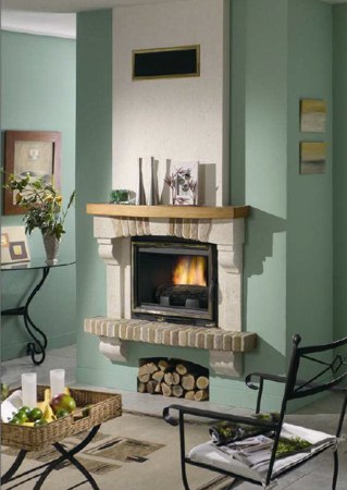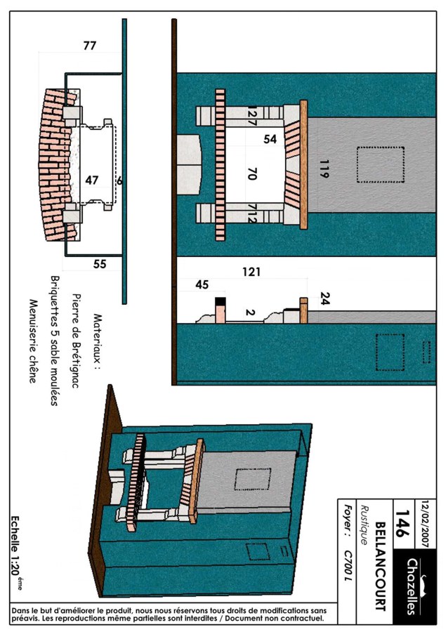Maalähedase välimusega kamin. Detaild valmistatud kivist Bretignac, dekoratiivtellisest.Koldena kasutatud malmist südamikku Chazelles C 703 L. Kaminast võimalik ka avatud koldega versioon. Üldised mõõdud: 1290 x 210 x 1210 mm