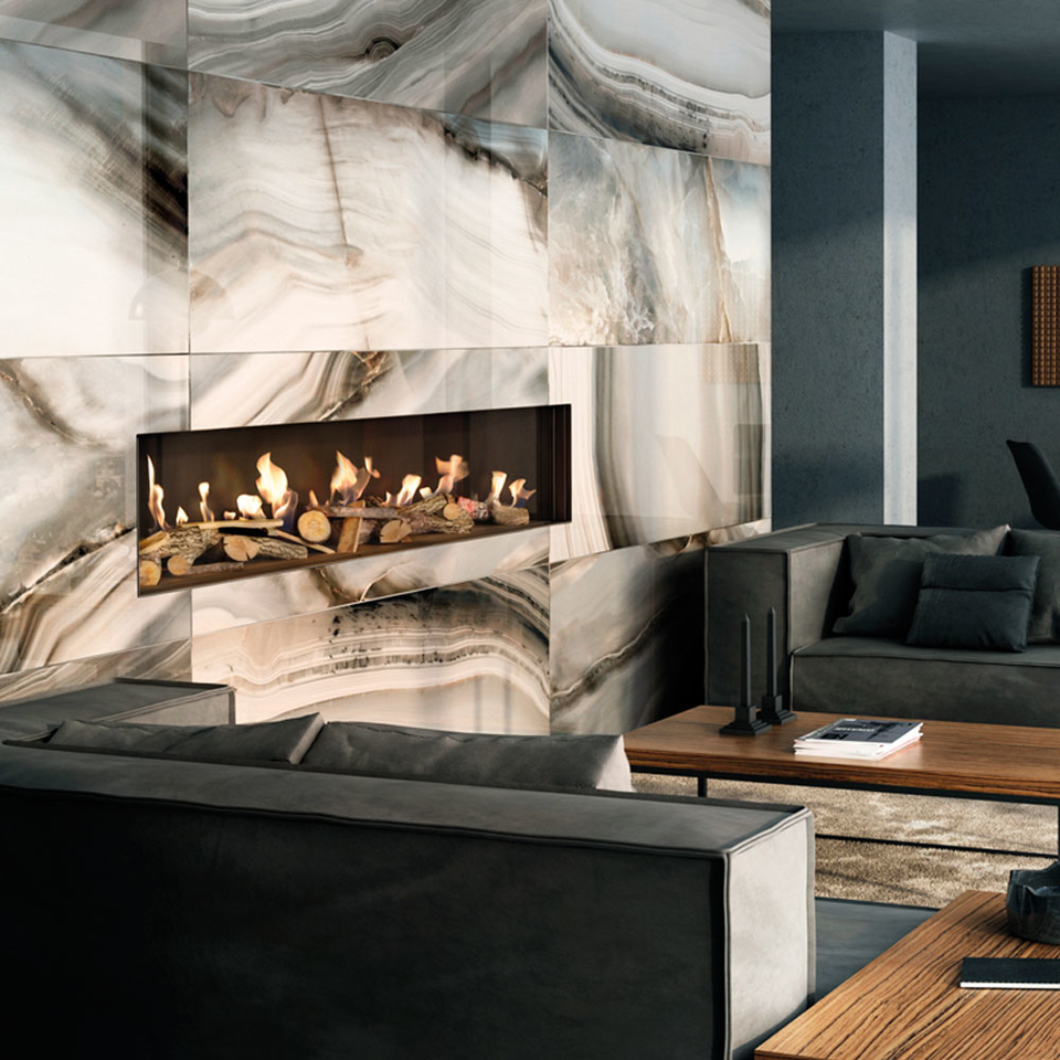 Suletud kaminasüdamik tarnitakse koos komplekti dekoratiivsete kividega, mis kaunistavad kamina kollet. Kamina juhtimine toimub komplekti kuuluva kaugjuhtimispuldiga.