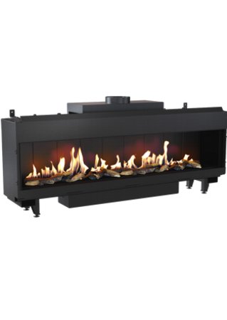 Horisontaalne eriti lai gaasil töötav kaminasüdamik.