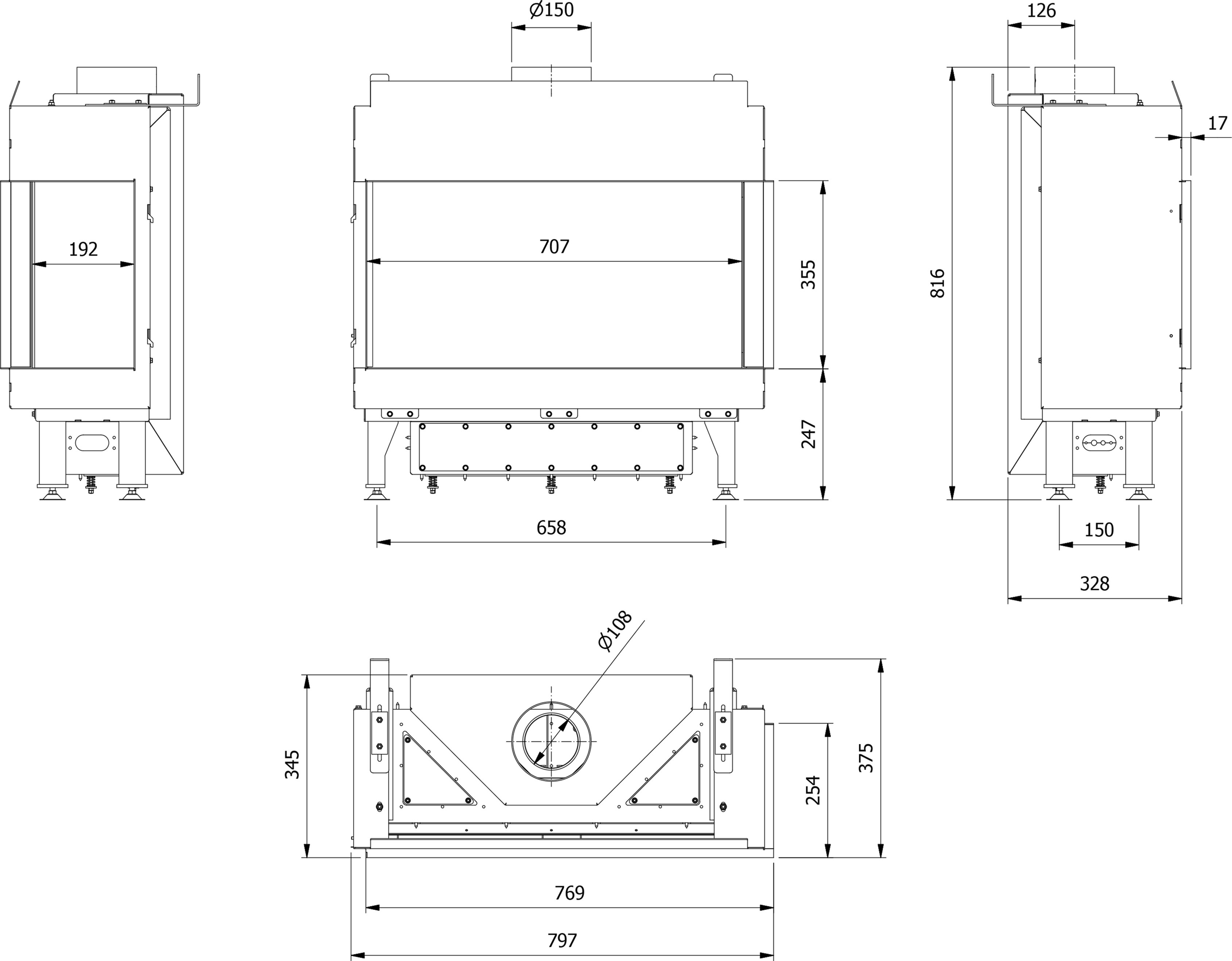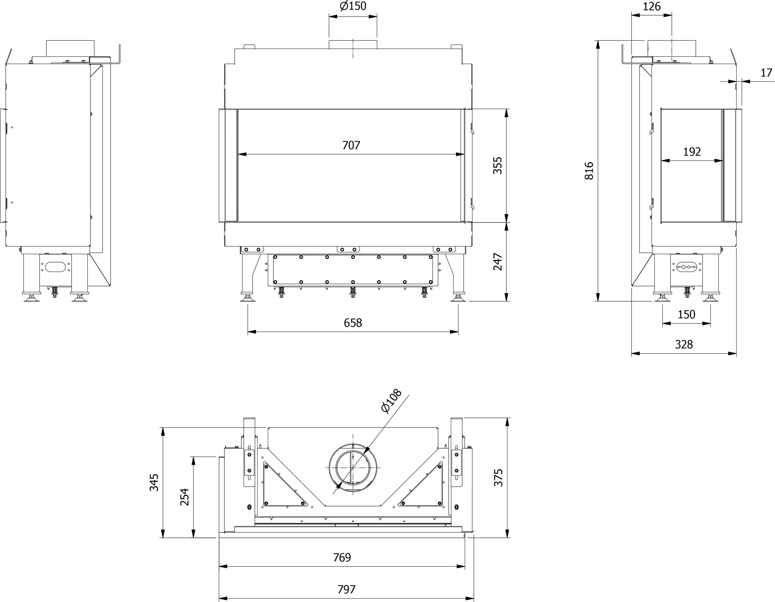 Horisontaalse kujuga gaasil töötav küljeklaasiga kaminasüdamik. Kaminasüdamikku saab kas parempoolse või vasakpoolse küljeklaasiga.
