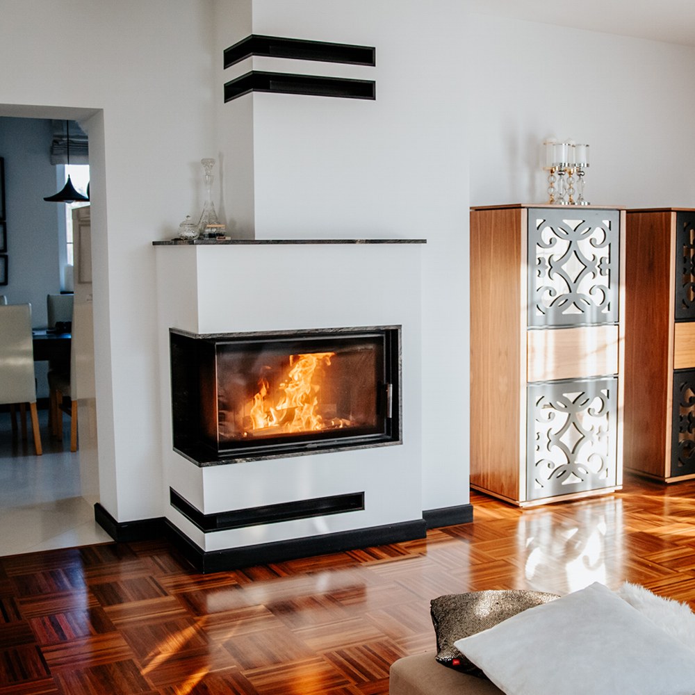 Terasest küljeklaasiga südamik on küljele avaneva klaasuksega. Kolle on vooderdatud tulekindla soojust salvestava materjaliga TERMOTEC.