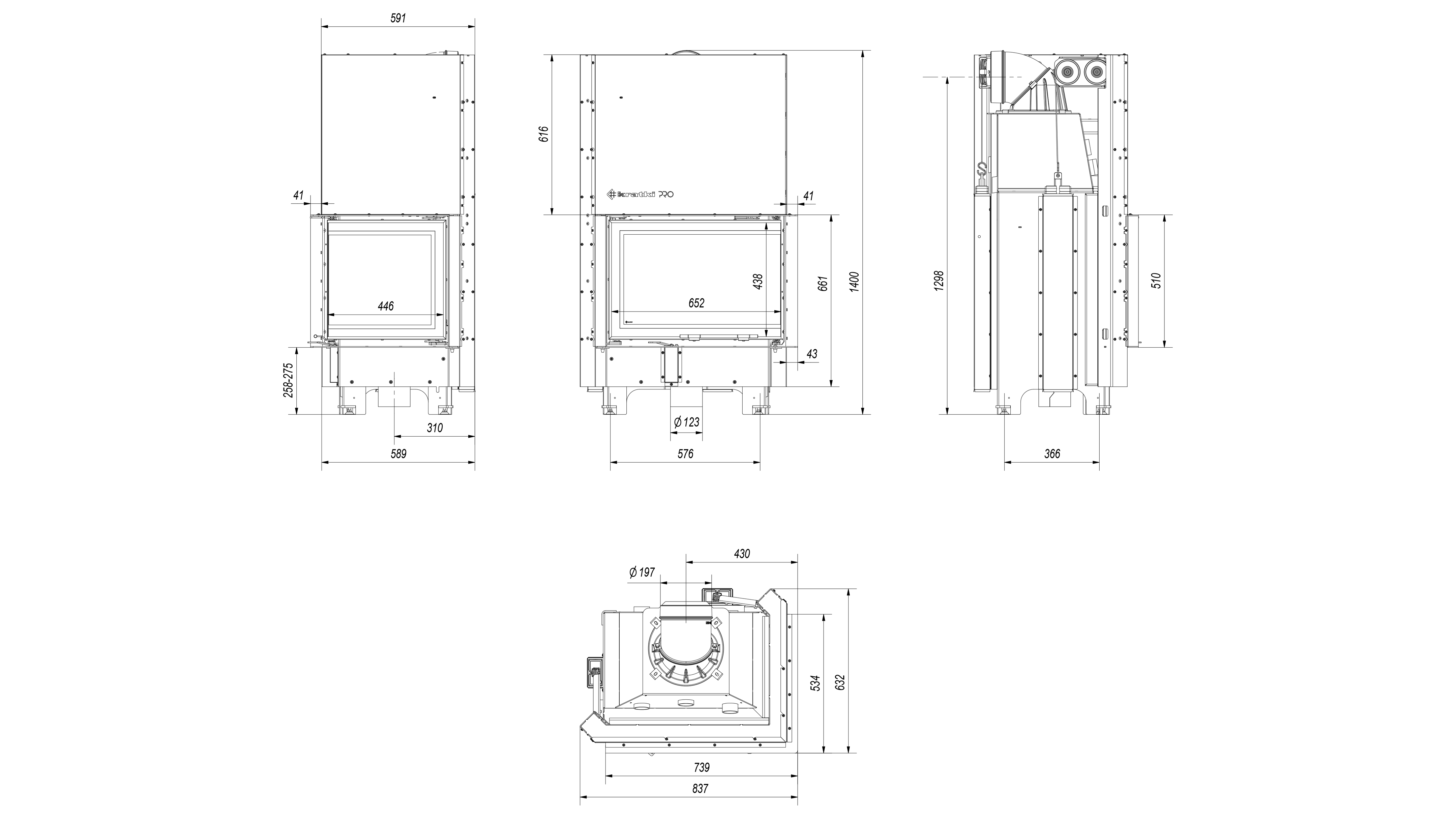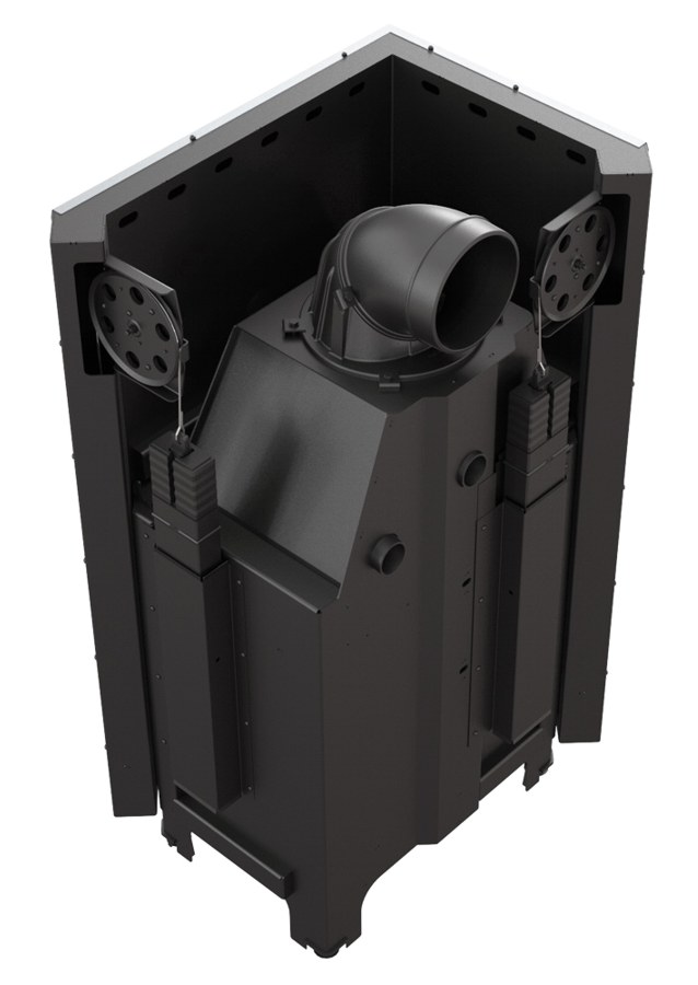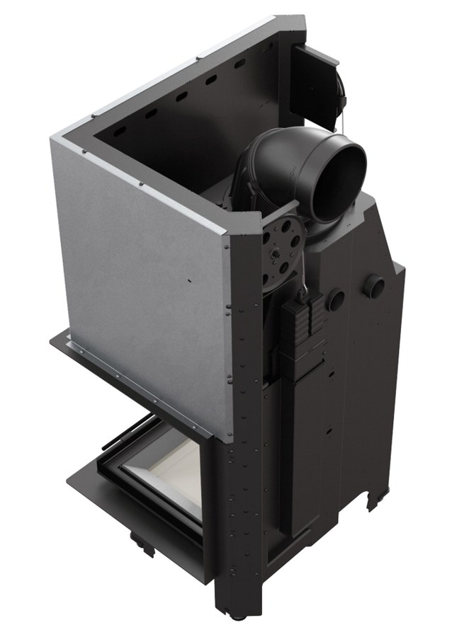 Terasest südamik tõstetava nurga klaasuksega. Kaminasüdamik on võimalik nii parempoolse, kui ka vasakpoolse küljeklaasiga. Kolle on vooderdatud tulekindla soojust salvestava materjaliga TERMOTEC. Südamik on varustatud reguleeritavate jalgadega, mis võimaldab toote lihtsat loodimist. Kaminasüdamik on varustatud välisõhuga ühendamise liitmikuga.