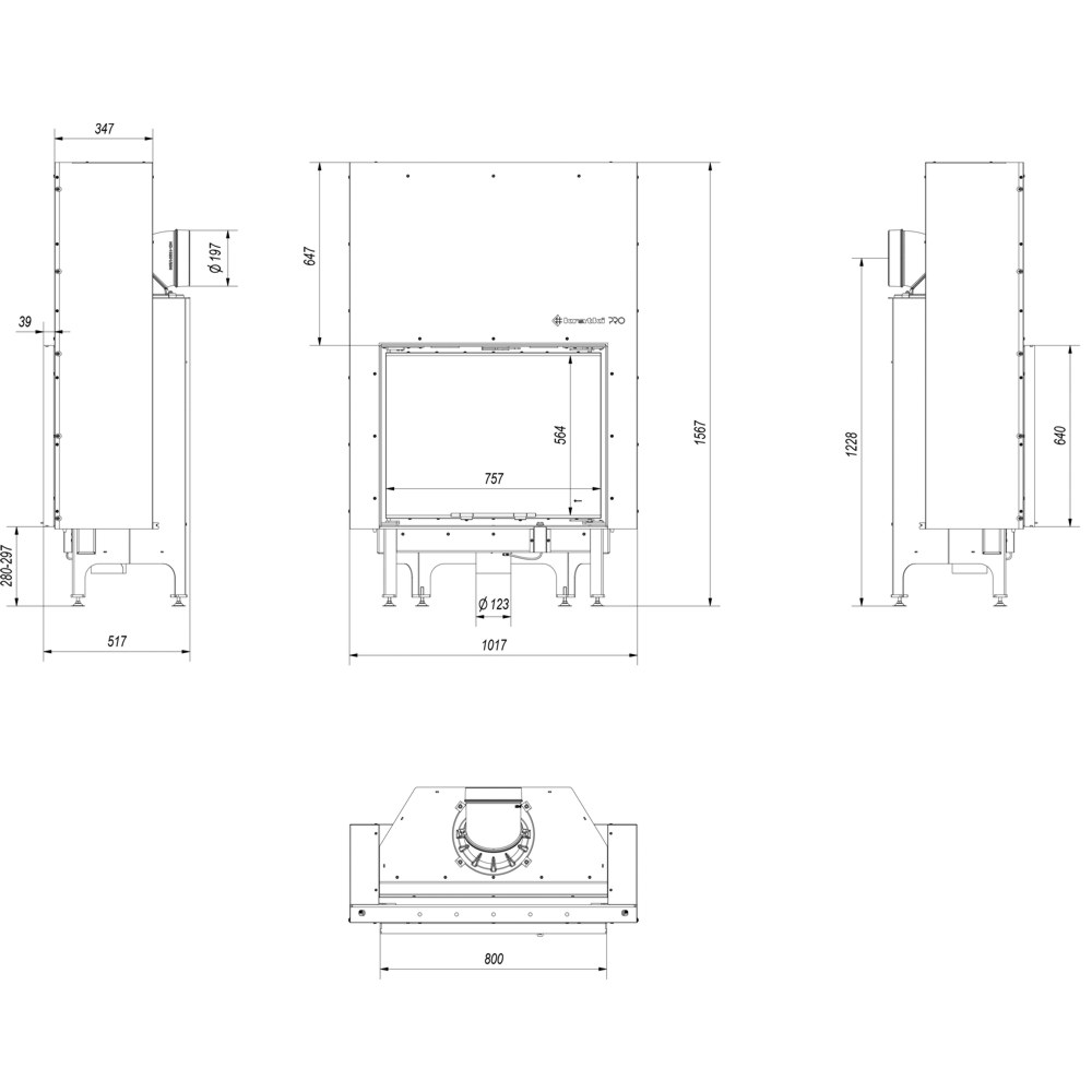 Südamik on varustatud reguleeritavate jalgadega, mis võimaldab toote lihtsat loodimist. Kaminasüdamik on varustatud välisõhuga ühendamise liitmikuga.