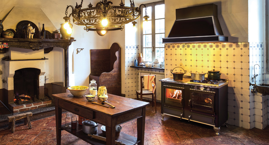 Suur puuküttega kolle kombineeritud suurepärase 53-liitrise multifunktsionaalse elektriahju ja poolproffessionaalse pliidiplaadiga