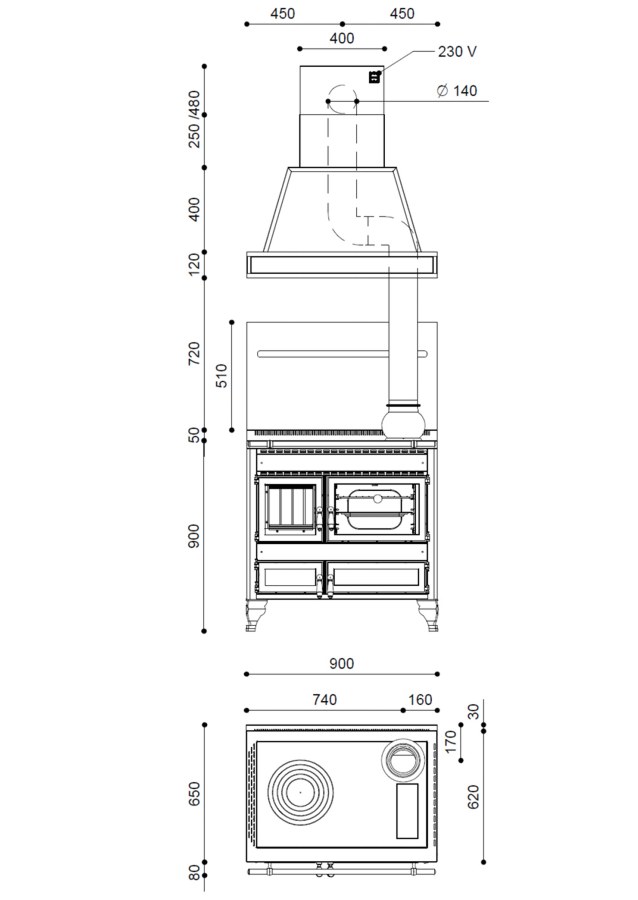 Rustica 90L on klassikalise suurusega puuküttega pliit koos 45 liitrise praeahjuga. Pliidil on suure klaasiga kolde ja praeahju uks.