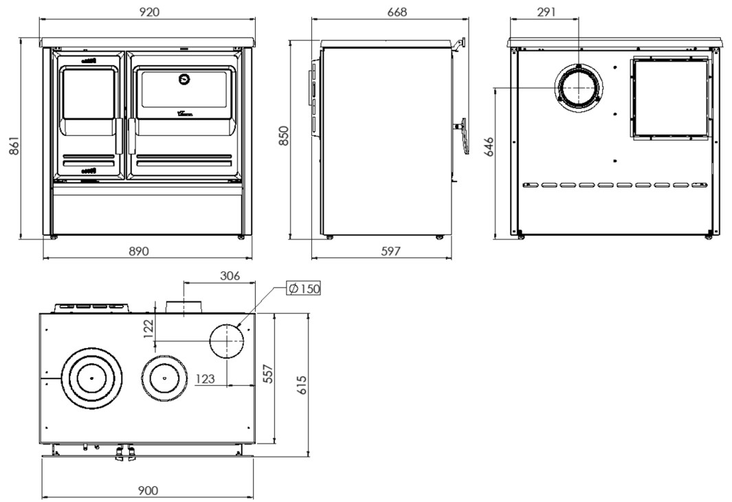 Traditsiooniline malmist puupliit ETNA-7T. Pliiti on võimalik tellida liitmisega tagant või pealt.