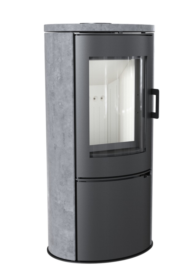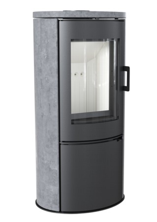 Terasest puuküttega kamin. Kolle on vooderdatud tulekindla soojust salvestava materjaliga ACUMOTTE.
