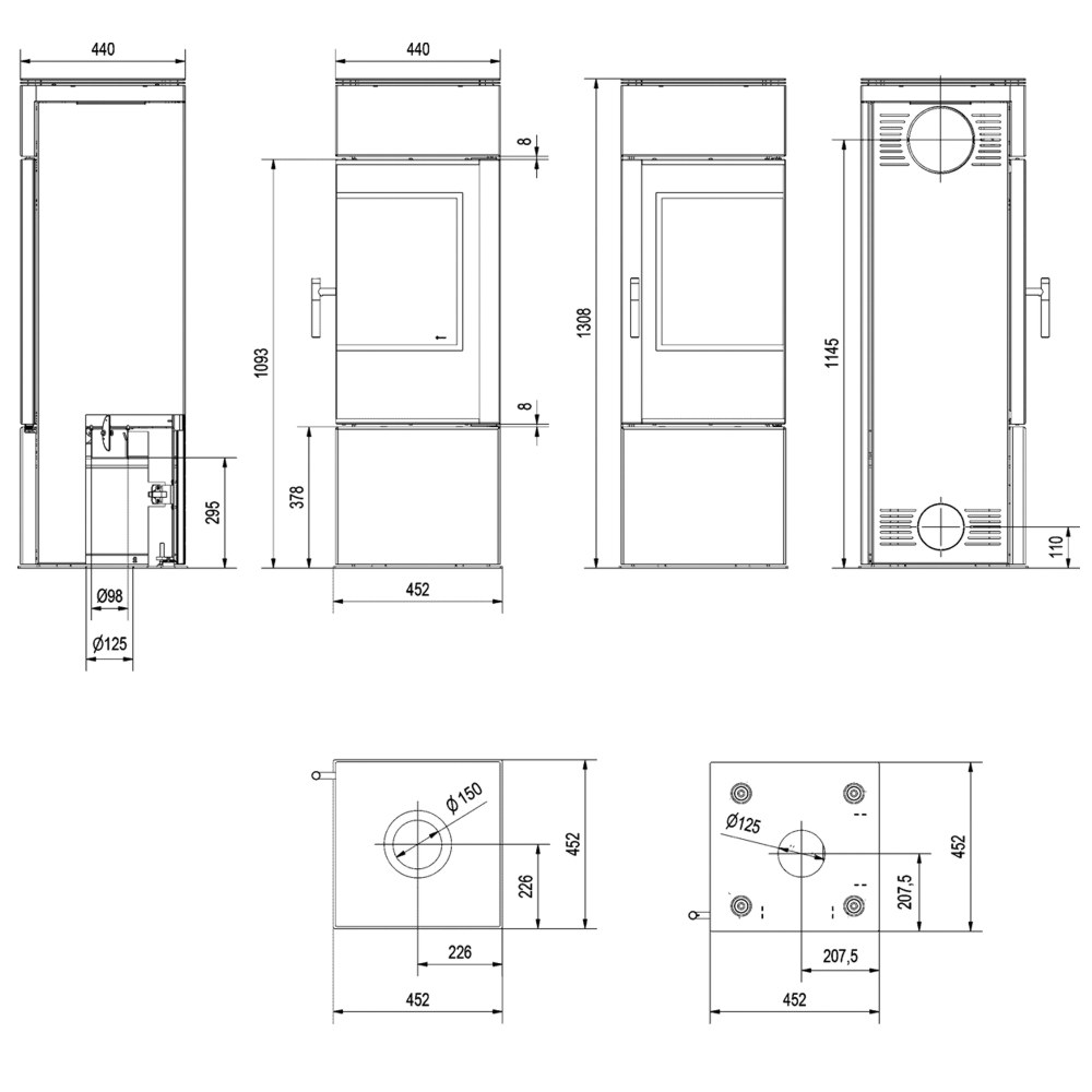 Kamin on varustatud reguleeritavate jalgadega, mis võimaldab toote lihtsat loodimist. Kamina põlemisõhu saab soovi korral võtta väliskeskkonnast.