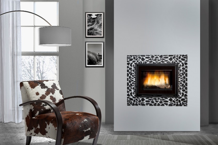 Malmist südamik välise serigraafilise klaasiga, millel on küljele avanev uks puidu laadimiseks. Üks pöörlev regulaator primaarse ja sekundaarse õhu juhtimiseks. Järelpõlemise süsteem. Otsese ühenduse võimalus välisõhuga. Klaasikaitsesüsteem © (klaasi puhtana hoidmiseks).