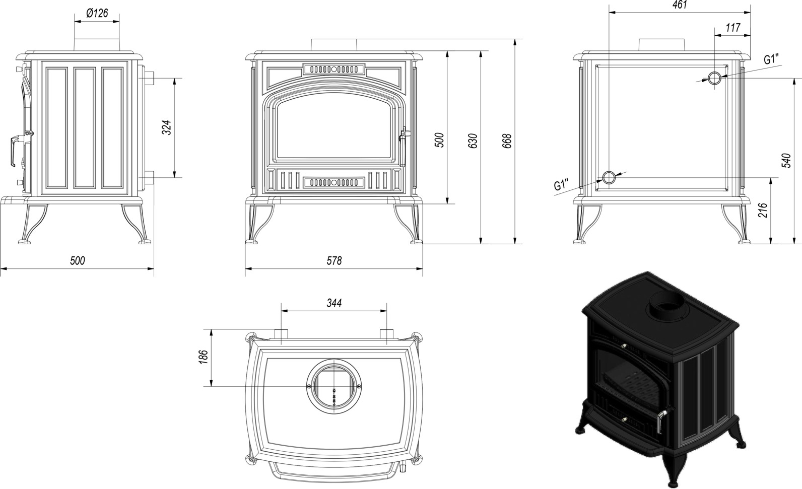 Kõrgus: 668 mm Võimsuse vahemik: 5,4-10,5 kW
