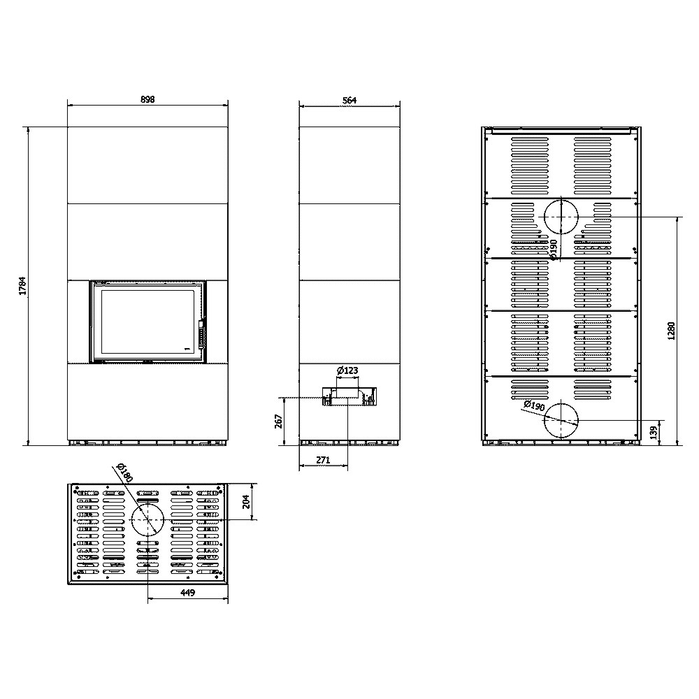 KAMINA MÕÕDUDKõrgus: 1784 mmLaius: 898 mmSügavus: 564 mmKAMINA TEHNILISED ANDMEDSoojusvõimsuse vahemik: 3,5 - 11 kWNominaalne soojusvõimsus: 8 kWKasutegur: 79,7 %Väljuvate suitsugaaside temperatuur: 270 ℃Halupuude max. pikkus: 40 cmSuitsutoru ühenduse diameeter: 160 mmKaal: 297 kg