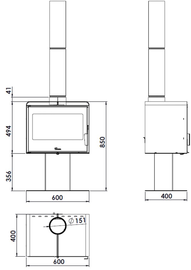 Kõrgus: 850 mmLaius: 600 mmSügavus: 400 mmKAMINA TEHNILISED ANDMED