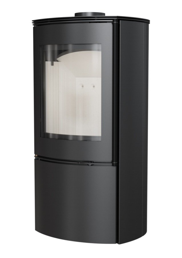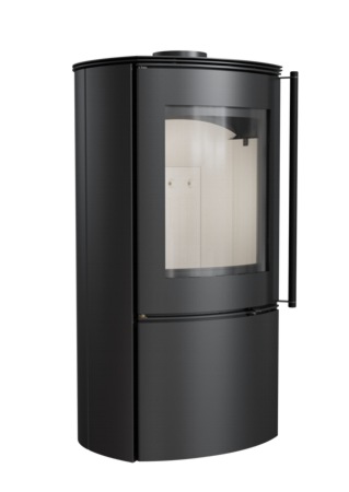Terasest puuküttega kamin. Kolle on vooderdatud tulekindla soojust salvestava materjaliga ACCUMOTE.