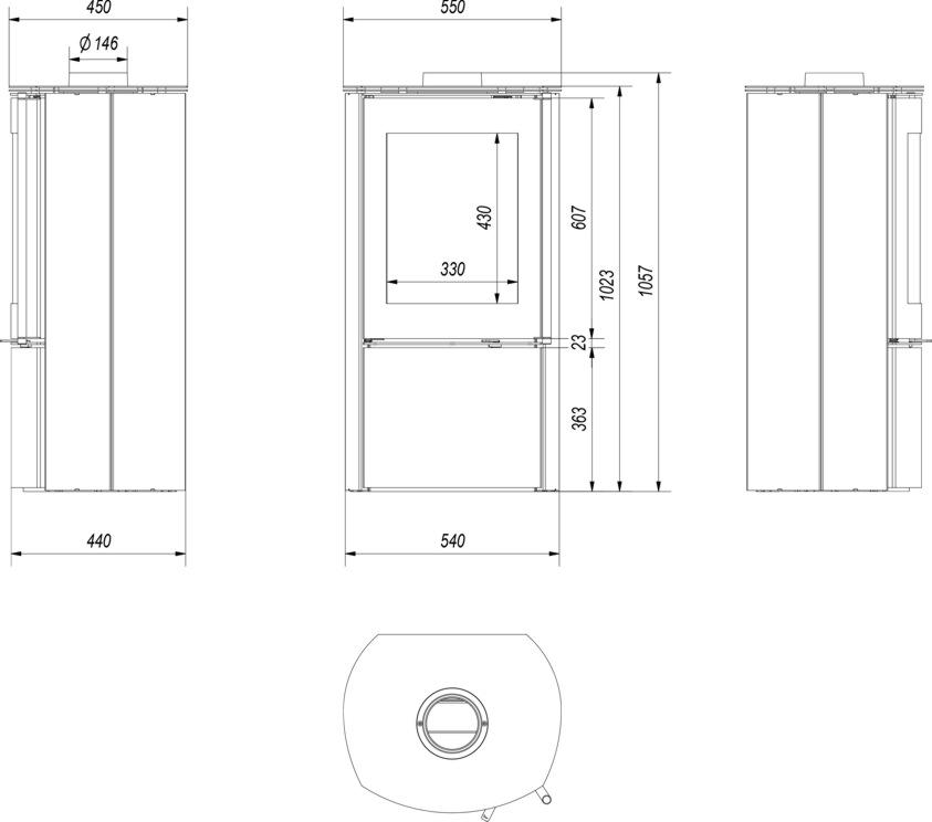 Kamin on varustatud reguleeritavate jalgadega, mis võimaldab toote lihtsat loodimist. Kamina põlemisõhu saab soovi korral võtta väliskeskkonnast.