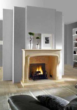 Antiikse välimusega avatud koldega kamin sirgele seinale. Detaild valmistatud kivist Bourgogne Doree. Üldised mõõdud: 1350 x 440 x 1110 mm
