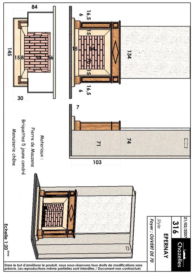 Klassikalise välimusega avatud kamin sirgele seinale. Detaild valmistatud kivist Bourgogne Doree. Portaal valmistatud naturaalsest kirsi puidust.Avatud kolde mõõdud on 710 x 540mm. Kaminast võimalik ka südamikuga versioon.