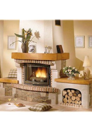 Maalähedase välimusega kamin sirgele seinale. Detaild valmistatud kivist Bourgogne Doree, dekoratiivtellisest. Komplekti kuulub tammest puitkarniis ja küljeriiulid.Koldena kasutatud malmist südamikku Chazelles CG 803 L. Kaminast võimalik ka avatud koldega versioon. Üldised mõõdud: 2730 x 840 x 1240 mm