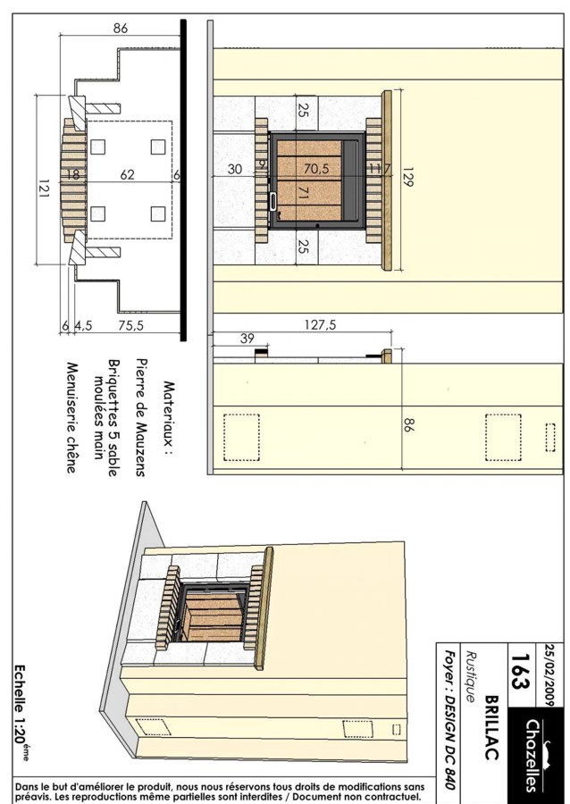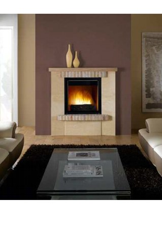 Maalähedase välimusega süvistatav kamin nii sirgele seinale, kui nurka. Detaild valmistatud kivist Mauzens, dekoratiivtellisest.Koldena kasutatud malmist südamikku Chazelles DC 840. Kaminast võimalik ka avatud koldega versioon.