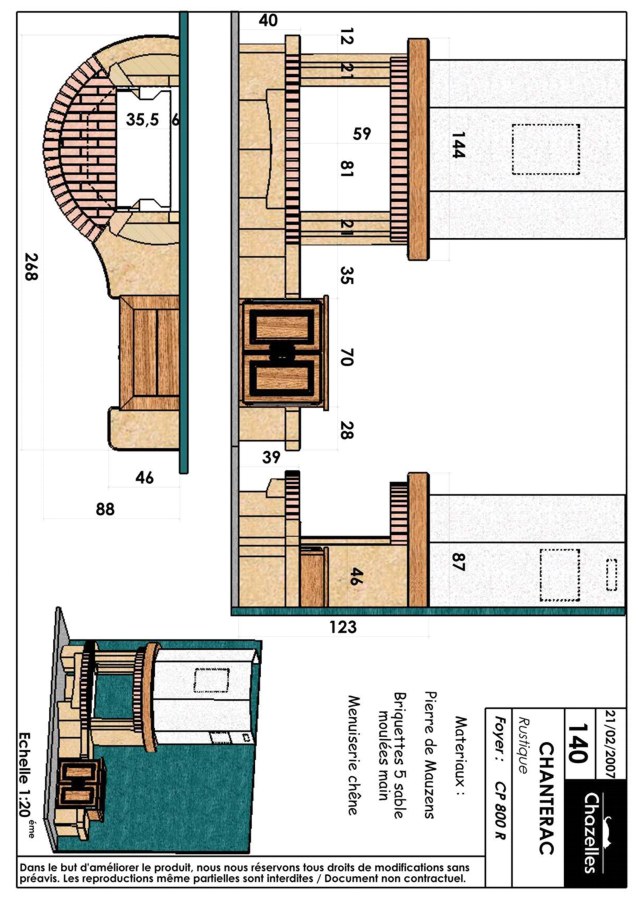 Maalähedase välimusega kamin sirgele seinale. Detaild valmistatud kivist Mauzens, dekoratiivtellisest.Komplekti kuulub tammest puitkarniis küljeriiul ja kapp.Koldena kasutatud malmist südamikku Chazelles CP 803 L. Kaminast võimalik ka avatud koldega versioon.