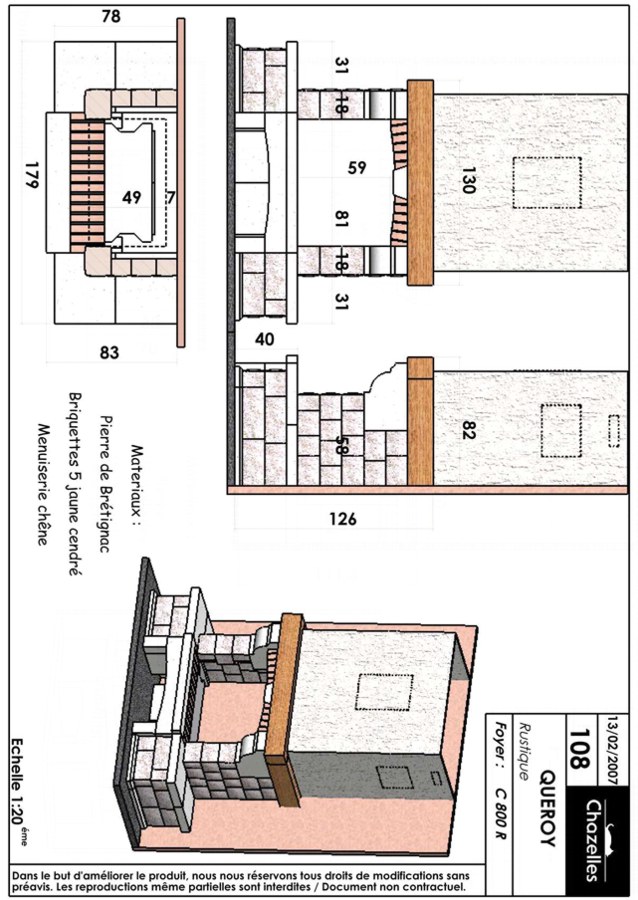 Maalähedase välimusega kamin sirgele seinale. Detaild valmistatud kivist Mauzens, dekoratiivtellisest.Komplekti kuulub tammest puitkarniis.Koldena kasutatud malmist südamikku Chazelles C 801 L. Kaminast võimalik ka avatud koldega versioon.