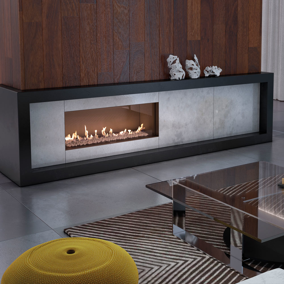Suletud kaminasüdamik tarnitakse koos komplekti dekoratiivsete kividega, mis kaunistavad kamina kollet. Kamina juhtimine toimub komplekti kuuluva kaugjuhtimispuldiga.