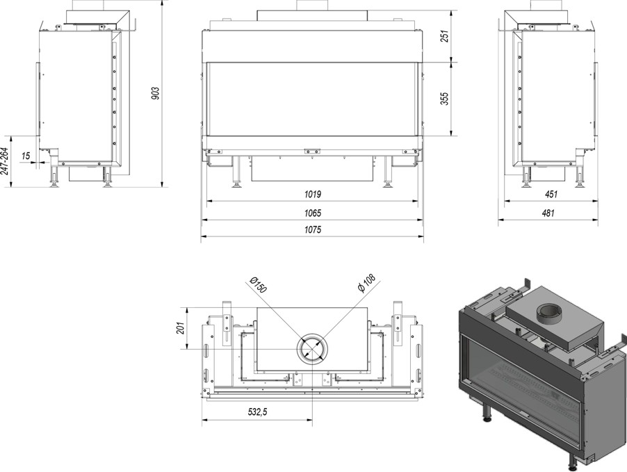 - Üldised mõõdud LxSxK (mm) : 1075 x 481 x 903