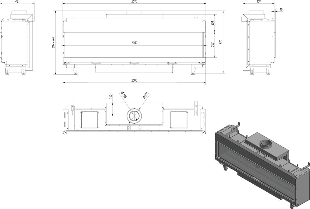 - Üldised mõõdud LxSxK (mm) : 2010 x 481 x 897