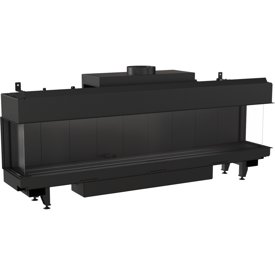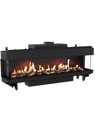 Horisontaalse kujuga gaasil töötav kahe küljeklaasiga kaminasüdamik.