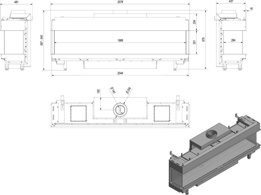- Üldised mõõdud LxSxK (mm) : 2076 x 481 x 897