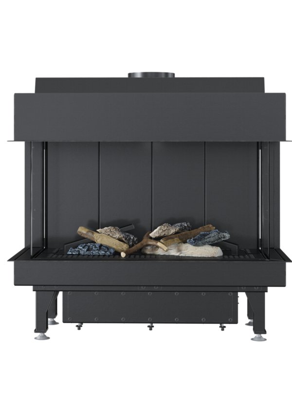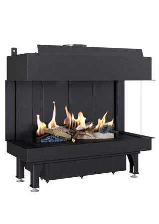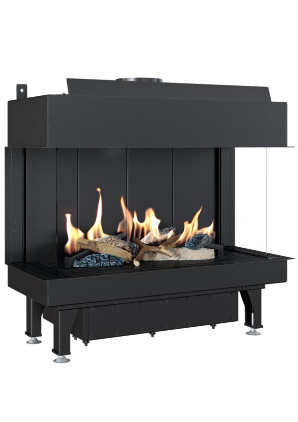 Horisontaalse kujuga gaasil töötav kahe küljeklaasiga kaminasüdamik.
