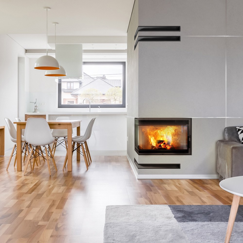 Terasest küljeklaasiga südamik on küljele avaneva klaasuksega. Kolle on vooderdatud tulekindla soojust salvestava materjaliga TERMOTEC.