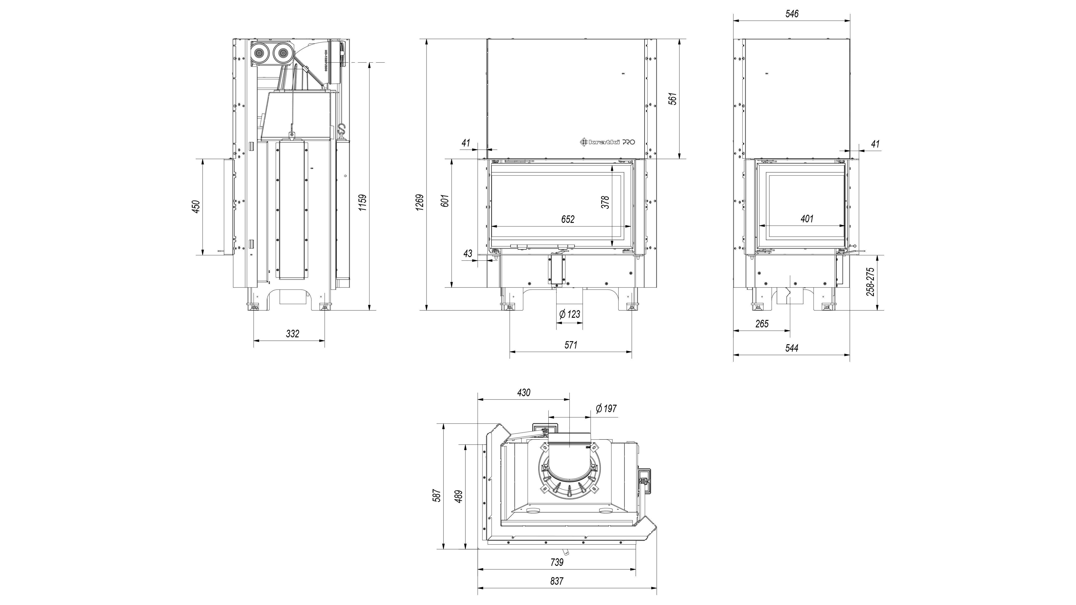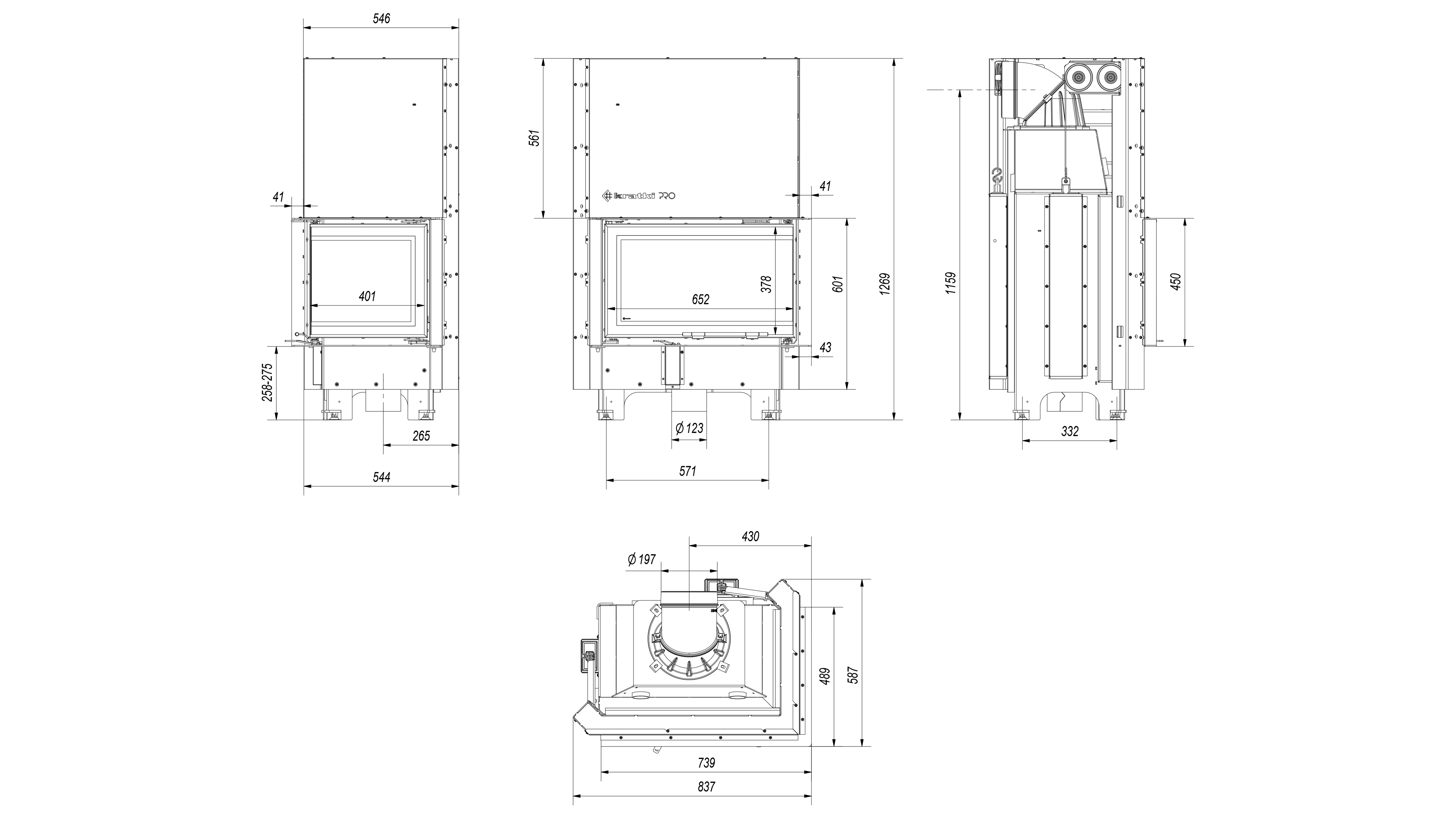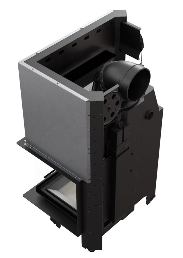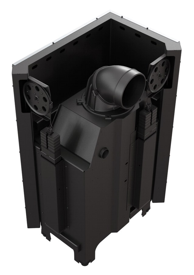 Terasest südamik tõstetava nurga klaasuksega. Kaminasüdamik on võimalik nii parempoolse, kui ka vasakpoolse küljeklaasiga. Kolle on vooderdatud tulekindla soojust salvestava materjaliga TERMOTEC. Südamik on varustatud reguleeritavate jalgadega, mis võimaldab toote lihtsat loodimist. Kaminasüdamik on varustatud välisõhuga ühendamise liitmikuga.
