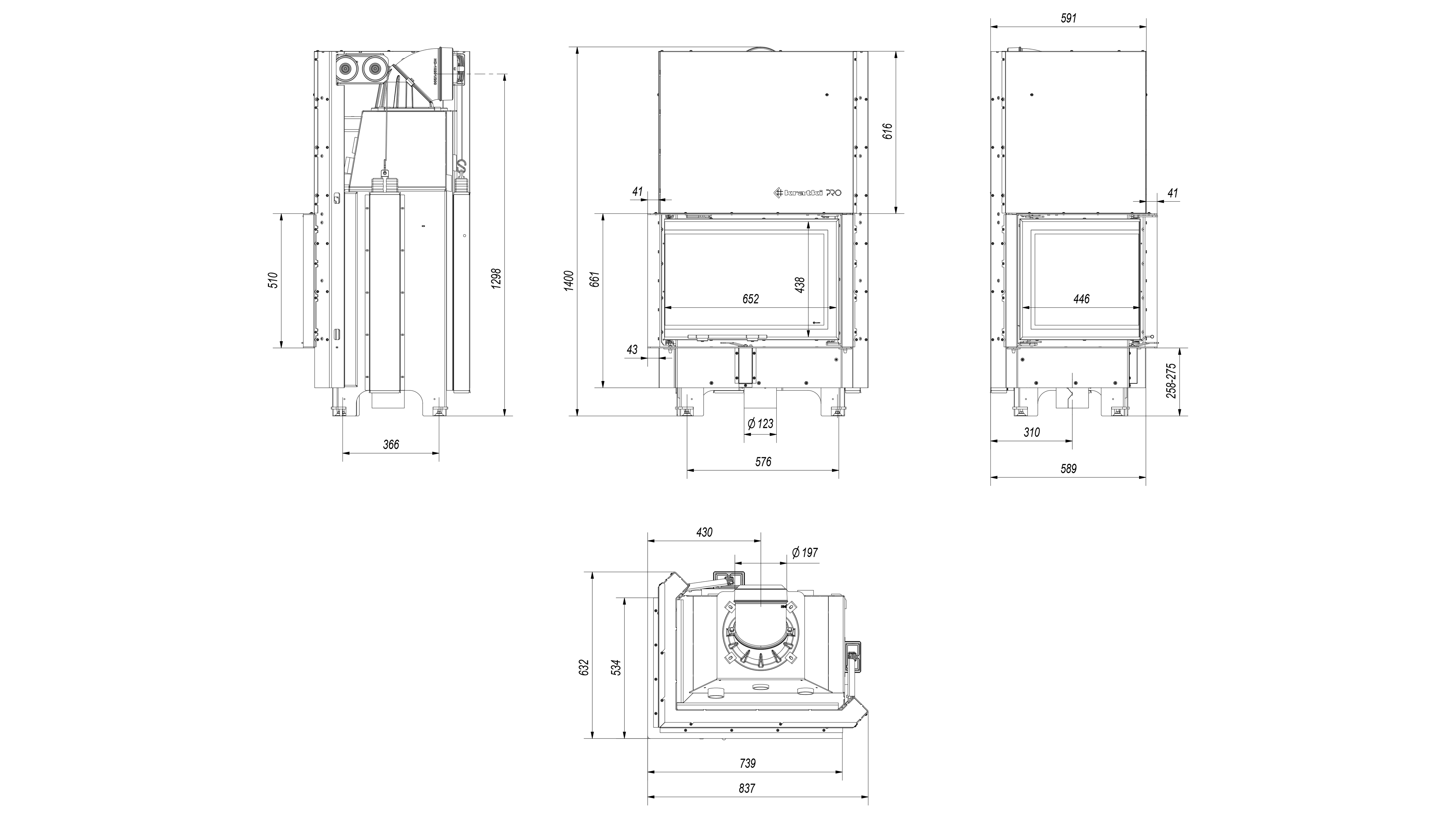 Terasest südamik tõstetava nurga klaasuksega. Kaminasüdamik on võimalik nii parempoolse, kui ka vasakpoolse küljeklaasiga. Kolle on vooderdatud tulekindla soojust salvestava materjaliga TERMOTEC. Südamik on varustatud reguleeritavate jalgadega, mis võimaldab toote lihtsat loodimist. Kaminasüdamik on varustatud välisõhuga ühendamise liitmikuga.
