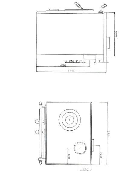 Traditsiooniline malmist puupliit LIS 5T. Pliiti on võimalik tellida klassikalise malmist pliidiplaadiga või lisa keraamilise plaadiga.