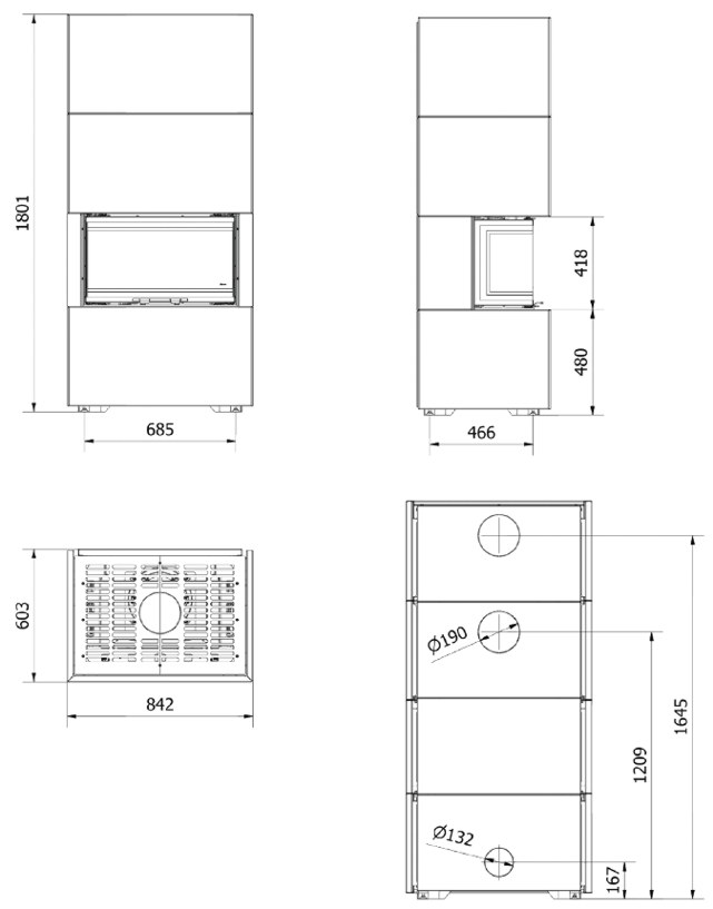 KAMINA MÕÕDUDKõrgus: 1801 mmLaius: 842 mmSügavus: 603 mmKAMINA TEHNILISED ANDMEDSoojusvõimsuse vahemik: 3 - 9 kWNominaalne soojusvõimsus: 7 kWKasutegur: 83,0 %Väljuvate suitsugaaside temperatuur: 199 ℃Halupuude max. pikkus: 40 cmSuitsutoru ühenduse diameeter: 160 mmKaal: 188 kg