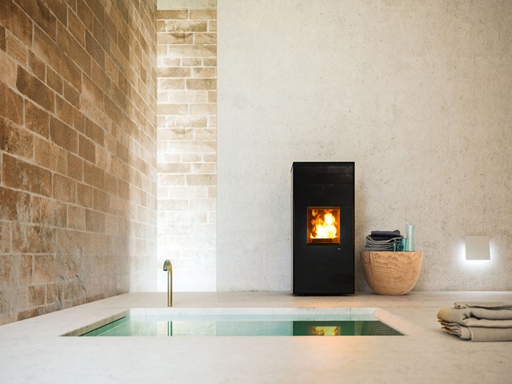 See pelletkamin on võimalik COMFORT AIR versioonina. Comfort Air versioonil suunatakse soe õhk ruumi kamina peal asuvast hajutist ja soovi korral on võimalik soe õhk juhtida kamina taga asuvast väljavõttest ka teistesse ruumidesse, mis asuvad kuni 8 m kaugusel. Kamina juhtimine toimub distantsjuhtimispuldist, mis võimaldab teil mugavalt juhtida kamina tööd(programmeerida sisse/väljalülitamise aegu, reguleerida temperatuuri, võimsust ja ventilaatorite kiirust).COMFORT AIR versioon