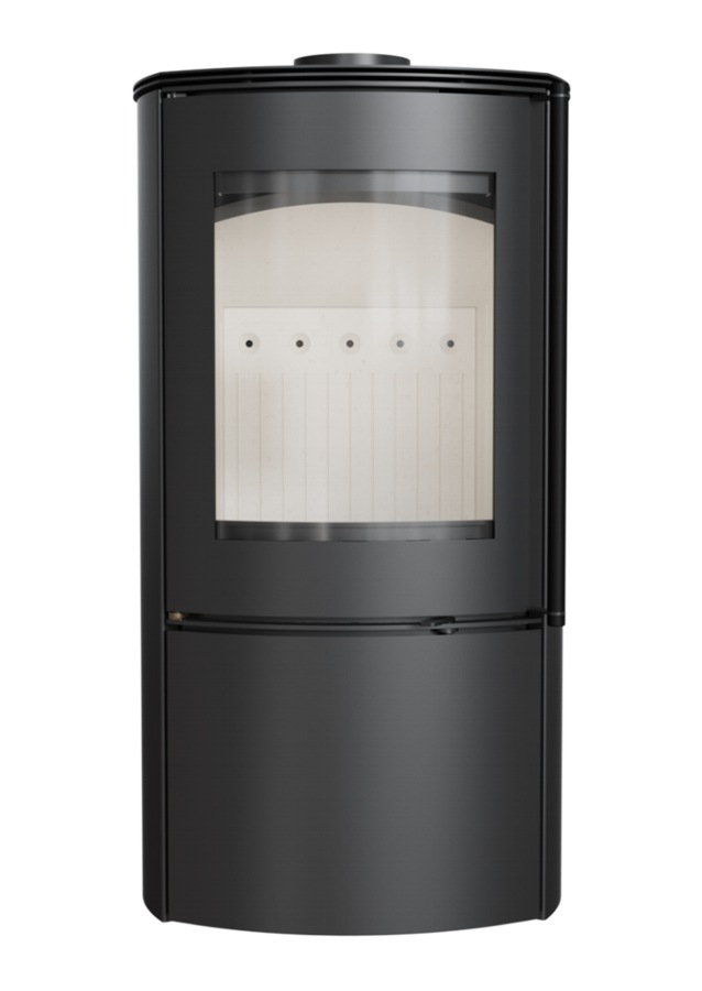 Terasest puuküttega kamin. Kolle on vooderdatud tulekindla soojust salvestava materjaliga ACCUMOTE.