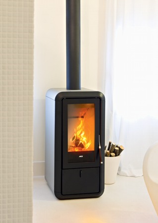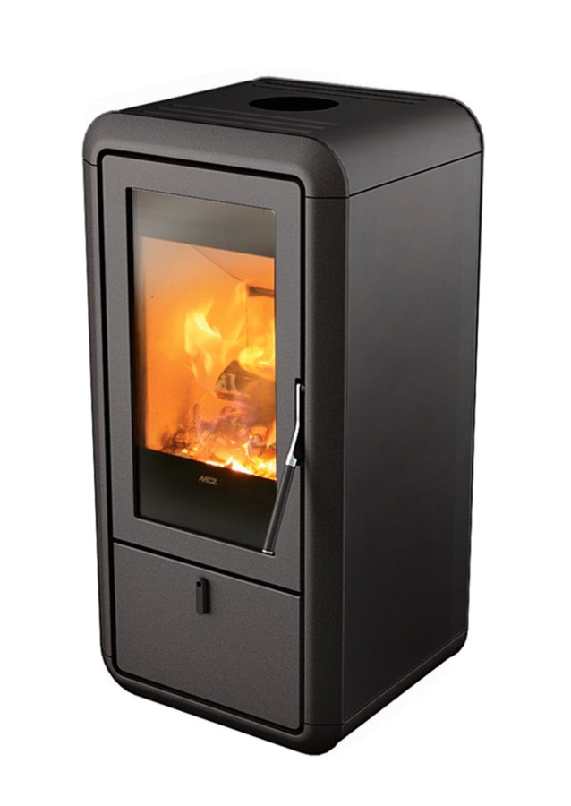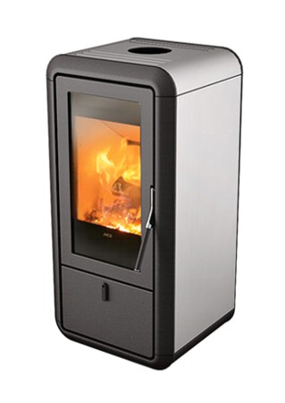 Kaasaegse välimusega puuküttega kamin. Soojus tuuakse ruumi naturaalse konvektsiooniga.Selle kamina metallist küljed on võimalikud mustana või hõbedasena.