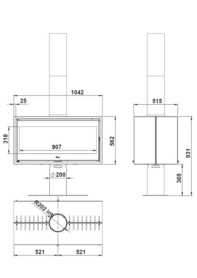 Kõrgus: 931 mmLaius: 1042 mmSügavus: 515 mmKAMINA TEHNILISED ANDMED