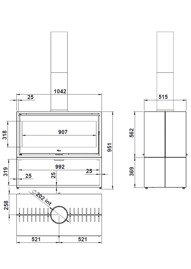 Kõrgus: 951 mmLaius: 1042 mmSügavus: 515 mmKAMINA TEHNILISED ANDMED